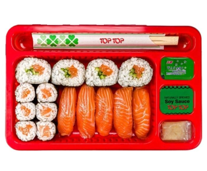 Всеки сет съдържа по един брой саше от: соев сос (вода, соеви зърна, пшеница, сол 9,1% , оцет, алкохол,захар), маринован джинджифил (джинджифил 88%, вода, сол, регулатори на киселинността: оцетна киселина, лимонена киселина, консервант: калиев сорбат, подсладители: захарин, сукралоза), уасаби паста (хрян на прах 27%, влагозадържащ агент: сорбитол, вода, соево олио, сол, горчица на прах 2% (малтодекстрин, царевично нишесте, синапено масло 0,5%, регулатор на киселинността: лимонена киселина, уасаби 0,1%, сгъстител: гума ксантан, куркума, оцветител: брилянтно синьо).