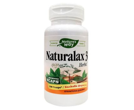 Натуралакс 3 е патентован продукт на Nature’s Way, който съдържа алое вера (латекс и лист), кора от американски орех, семена от копър, джинджифил, екстракт от американски зърнастец, листа от малина, листа от мента.