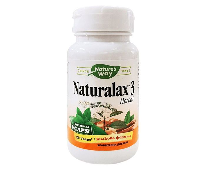 Натуралакс 3 е патентован продукт на Nature’s Way, който съдържа алое вера (латекс и лист), кора от американски орех, семена от копър, джинджифил, екстракт от американски зърнастец, листа от малина, листа от мента.