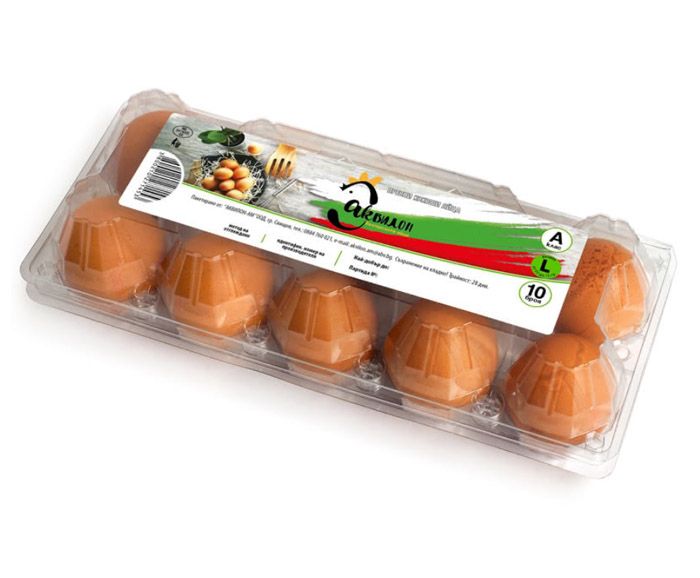 10 броя яйца от клетъчно отглеждани кокошки.