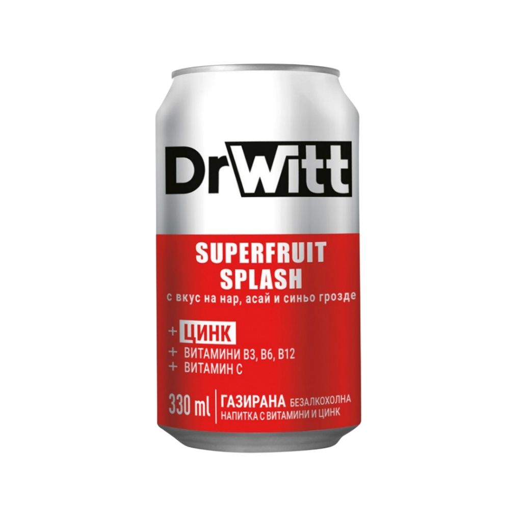 Газирана Напитка DrWitt Splash с Витамини и Вкус на Нар, Асай и Синьо Грозде 330 мл