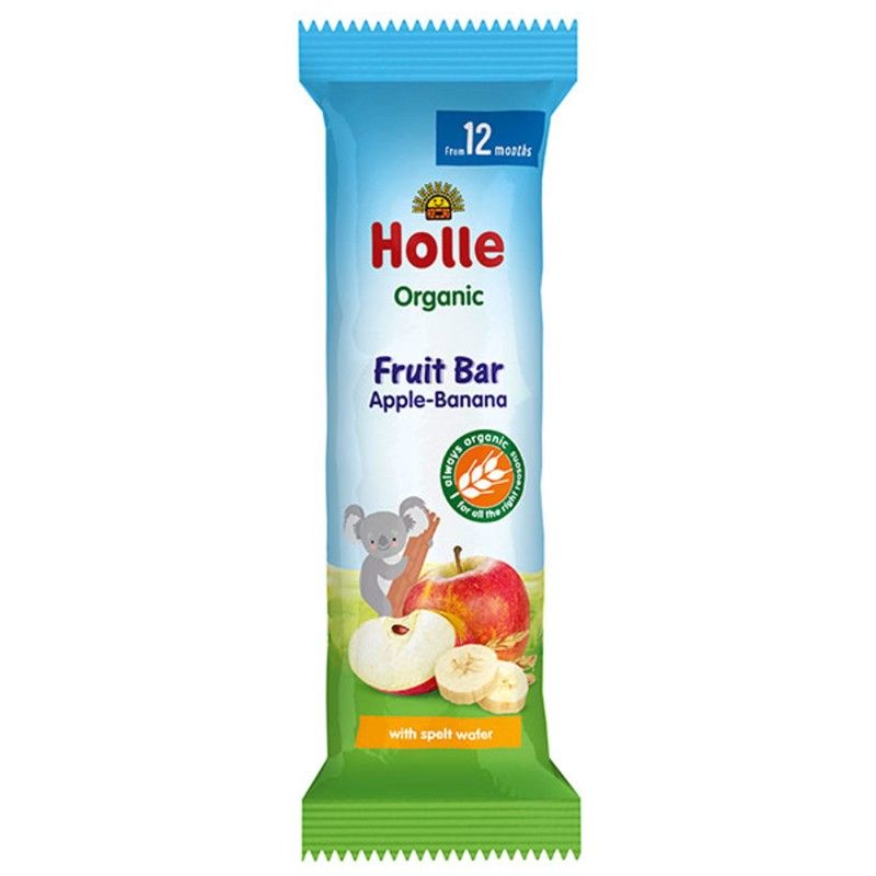 Сок ябълка от концентрат* 44%, сушен банан* 31%, овесен* 11%, оризово брашно*, спелтови вафлени кори* 6% (брашно от спелта*, картофено нишесте*), слънчогледово масло*, *от контролирано БИО производство, може да съдържа следи от ядки, соя, мляко, сусам