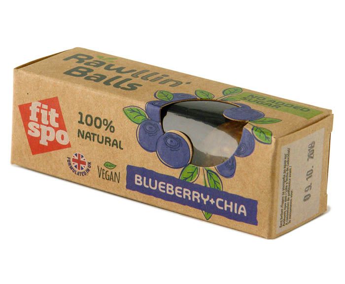 сушени плодове (55%) (стафиди, фурми), овес (13%), кокосово масло, семена от чиа (6%), соеви протеинови криспита (соев протеин, Тапиока), смлени бадеми, сини боровинки (4%)(боровинки, концентрат от ябълков сок), тиквени семки, кайсии (2%), концентрат от лимонов сок, натурален ароматизант