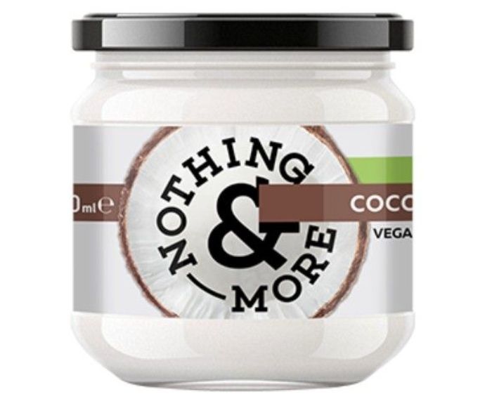 Това е 100% студено пресовано био кокосово масло Nothing More. Подходящо е за козметична и кулинарна употреба – овлажнява кожата, забавя стареенето ѝ, подхранва косата, а може да се ползва и за готвене на десерти… всъщност за готвене на всичко, към което искате да добавите богат натурален аромат на свеж кокос. За по-лесен и добър живот &Nothing More.