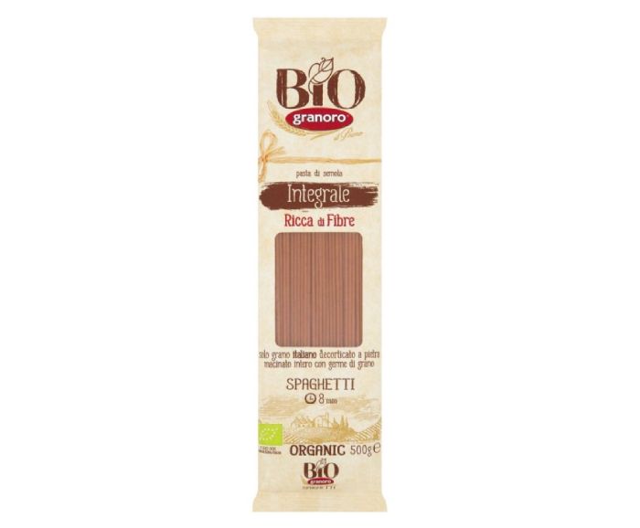 Пастата е получена от суровини 100% от италианско органично земеделие чрез метод на отглеждане, при който не се използват пестициди и синтетични вещества, а само натурални методи. Пълнозърнестите спагети на BIO GRANORO са богати на фибри и хранителни вещества.