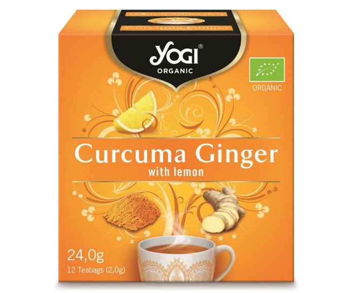 Корен от куркума * (30%), сладък корен *, портокалова кора *, джинджифил * (8%), ябълка *, канела *, лимонена върбинка *, лимонова трева *, маточина *, копър *, лимонова кора * (2%) , черен пипер *, лимоново масло * (1%), портокалово масло *, индийско орехче * * от контролирано биологично земеделие