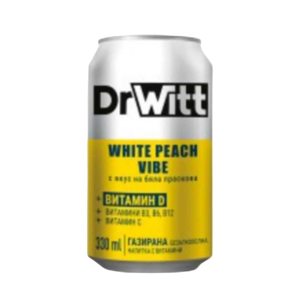 Газирана Напитка DrWitt VIbe с Витамини и Бяла Праскова кен 330 мл