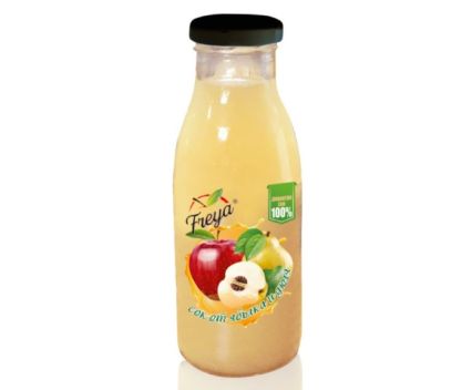 Студено пресован сок от ябълки 80 %, дюли 20%, неизбистрен, нефилтриран и пастьоризиран при 80ºС. Без добавени захар, подсладители, вода, консерванти оцветители и стабилизатори.