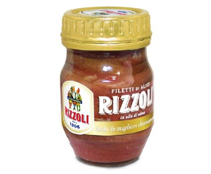 Rizzoli 100% натурално филе от аншоа, уловена в открито море. Продуктът е изцяло ръчно изработен и консервиран в органичен екстра вържин зехтин. Органичното масло спомага за подобряване на качествата и ароматите на суровините.