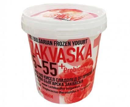 Прясно краве мляко 75%, захар, сухо обезмаслено мляко, краве масло (лактоза), декстроза, емуглатор, стабилизатор, млечна пробиотична закваска, овкусители - натурално пюре от плод малини 100гр/кг, подсладители.