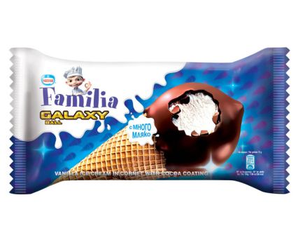 възстановено обезмаслено мляко, захар, вода, растителни мазнини и масла (кокосово, палмово), пшенично брашно, глюкозен сироп, суроватка на прах (от мляко), нискомаслено какао на прах (1,5%), емулгатор (соев лецитин, моно- и диглицериди на мастни киселини), стабилизатори (гума гуар, гума локуст бийн, преработени "Euchema" водорасли), ароматизанти (съдържа ванилин), сол. Може да съдържа: яйца и ядки.