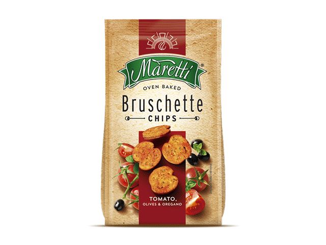 Пшенично брашно, растително масло (палмов олеин, антиоксидант: розмаринов екстракт), царевичен екструдат, подправка Домат, маслини и риган 5.5% (декстроза, сол, царевично нишесте, домат на прах 7.6%, овкусител: натриев глутамат; лук на прах, малтодекстрин, чесън на прах, регулатор на киселинност: лимонена киселина; натриев ацетат, лактоза, сух магданоз, антислепващ агент: силициев диоксид; хидролизиран растителен протеин (соя), сух риган 0.5%, маслини 0.5% ароматизанти), сол, обезмаслено мляко на прах, захар, сух глутен, мая, стабилизатор: гума гуар; декстроза, емулгатор:естери на моно- и диацетилна винена киселина с моно- и диглицериди на мастни киселини.