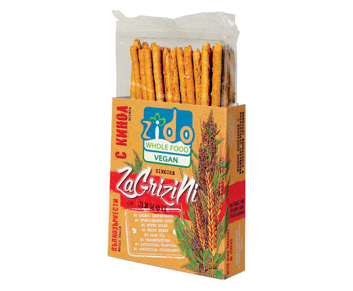 Пълнозърнесто брашно от лимец 64,6%, растително кокосово масло, брашно (бяла киноа 7%, червена киноа 7%, черна киноа 7%), кафява захар, хималайска трапезна сол 1,7%, набухватели: амониев бикарбонат, натриев бикарбонат