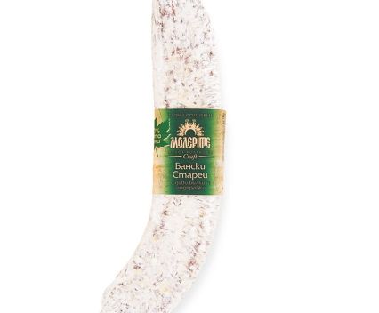 Чиста храна без Е-добавки. Приготвен по занаятчийска, крафт технология с диви билки и подправки от Банския край, напълнен в естествена обвивка, ръчно пресован и естествено изсушен.