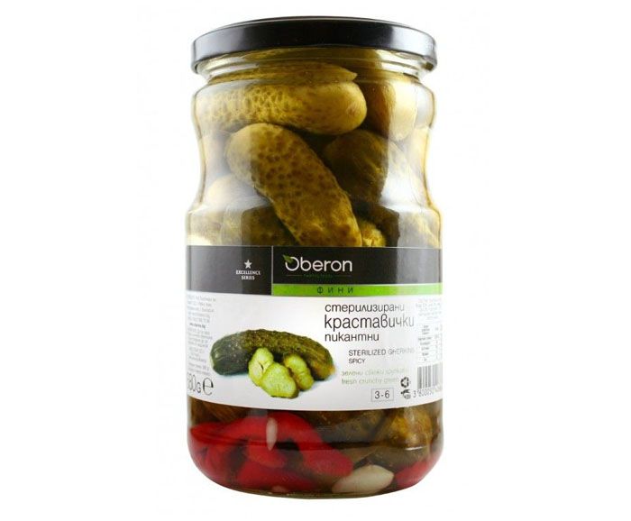 Краставичките оберон са зелени, свежи, хрупкави, добре овкусени с подправки, с деликатна пикантна нотка. Подходящи за салати, гарнитури и директна консумация.