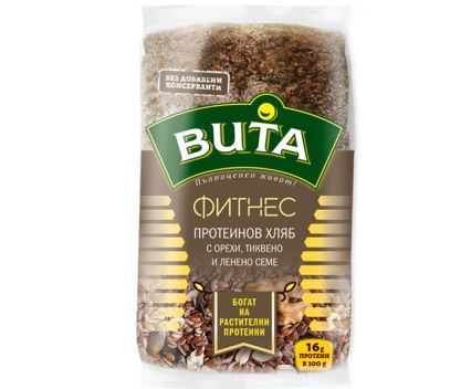 пълнозърнести брашна – 30% (пълнозърнесто пшенично брашно тип 1850 - 86%*, пълнозърнесто ръжено брашно тип 1750 - 14%*); вода; соев микс (едросмляна соя - 40%, пълнозърнесто пшенично брашно); кафяво ленено семе – 8%; соев протеин; грахов протеин; сух глутен; тиквени семена – 3%; пшенични трици; хлебна мая; орехи – 2%; морска сол; суха закваска (прежелатинизирано пшенично брашно, лимонена киселина, термично обработено пшенично брашно, малтодекстрин); пшенично малцово брашно; технологични добавки (ферментирало пшенично брашно; антиоксидант: аскорбинова киселина; ензими). Може да съдържа следи от: сусамово семе, овесени ядки, мляко и неговите производни. Не съдържа ГМО.