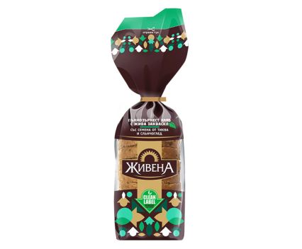 Пълнозърнесто пшенично брашно 50%, вода, пшенична закваска, тиквени семена 6.4%, слънчогледови семена 4%, растително слънчогледово масло, ръжена закваска 1% (вода, ръжено брашно), ръжени зърна, зърна лимец (пшеница), кафяв лен, малцов екстракт (ечемичен малц, вода, захарен сироп), сол, хлебна мая, ечемичено малцово брашно.