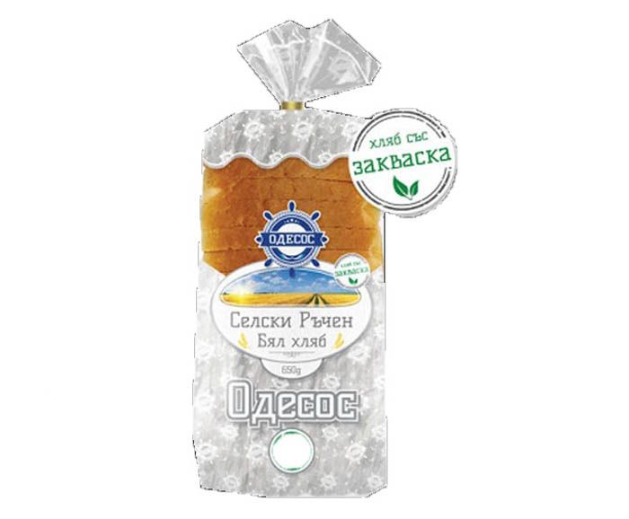 Истински ръчен селски хляб, какъвто го помните от едно време, приготвен с натурална закваска, която придава превъзходен млечен вкус и аромат на масло, съчетани с леки нотки на мека киселинност. Широк табан и перфектна по форма филия, с мека и еластична средина. Приготвен със специално селектирано бяло пшенично брашно.