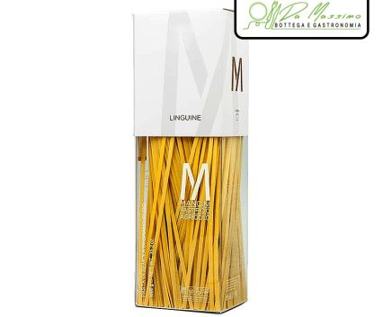 Mancini е производител, който чрез иновативна технология, създава и отглежда нов сорт твърда пшеница „Nonno Mariano”. Така създават класическа линия продукти, използвайки само твърдата пшеница, която отглеждат и прибират всяка година в полетата около тяхната фабрика за тестени изделия, следвайки добрите земеделски практики. Грисът и водата са единствените две съставки. Те използват кръгли бронзови матрици, за да оформят пастата си и след това я изсушават при температури под 55°C. Това гарантира равномерно приготвяне на лингуините и страхотен вкус. Лингуините са с диаметър 4,4 мм и дължина 260 мм.