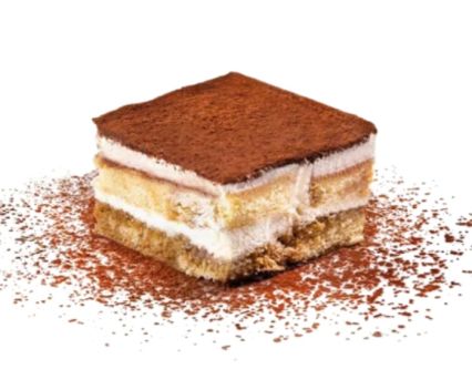 Сметана, подсладител; малтитол, яйчен меланж, безглутенова смес (оризово брашно, картофено нишесте, царевично нишесте, нишесте от тапиока, брашно от елда, царевично брашно, сол, стабилизатор; натриев алгинат), кафе еспресо, слънчогледово масло, яйчен жълтък, алкохолна напитка (етилов алкохол, вода, подсладител; малтитол, ароматизант), какао на прах, набухвател; бакпулвер, маскарпоне (пастьоризирана сметана, пастьоризирано мляко, регулатор на киселинността: лимонена киселина), ароматизанти.