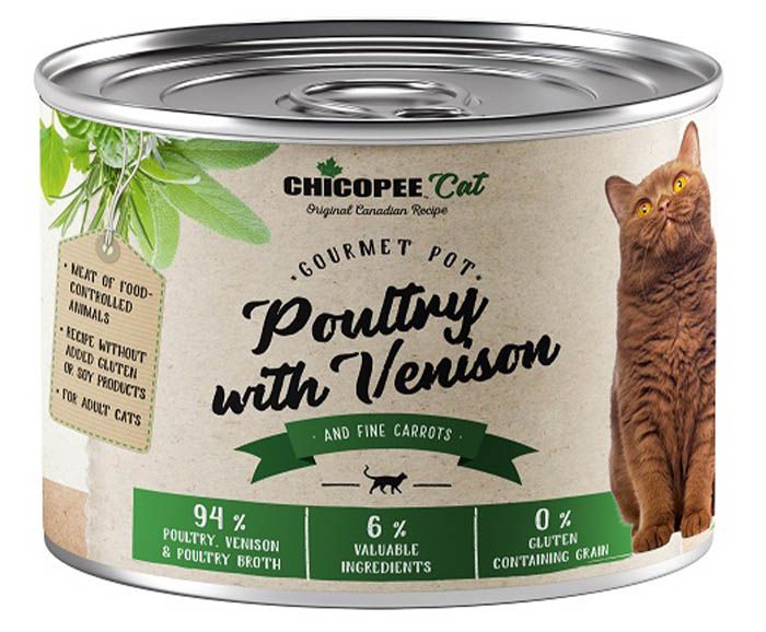 Консерва за котка Chicopee е апетитно предложение, чийто аромат и вкус много допадат на мъркащите питомци.