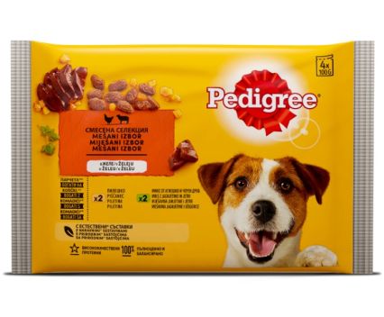 Пилешко: месо и животински продукти (40%, натурални* 93%; включително пилешко 14% и свински черен дроб 9% в хапките**), протеинови екстракти от зеленчуци, зърнени култури, масла и мазнини, минерали (0.6%), продукти с растителен произход* (включително изсушена пулпа от цвекло 0.5%). *Натурални съставки. **Хапките обикновено са 48% от продукта.