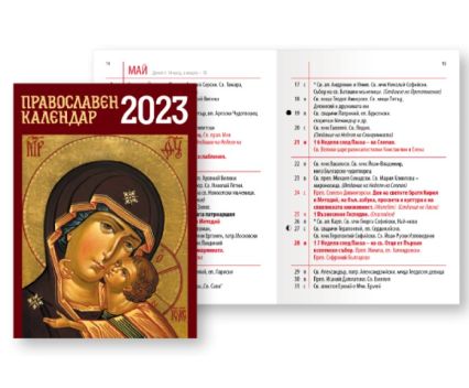 Православен календар за 2023 година, който съдържа подробно описание на всички официални и църковни празници, както и на всички имени дни.
