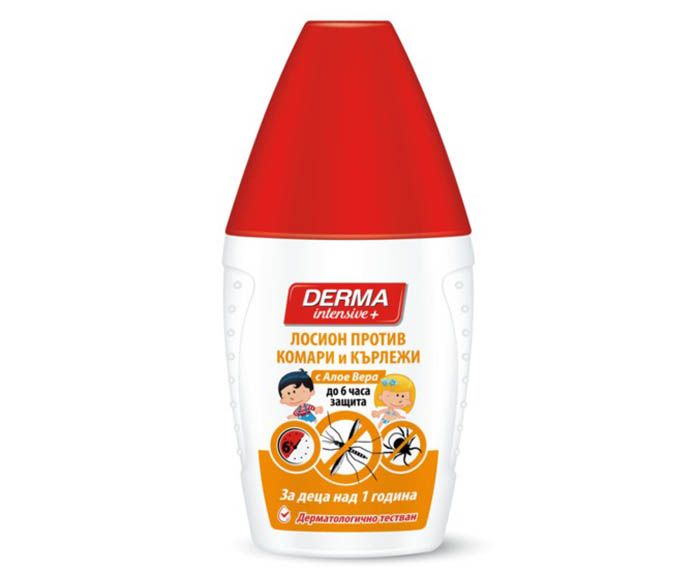 Derma Intensive + Лосион против комари и кърлежи за деца над 1 година. С алое вера. Ефективно отблъсква комари и кърлежи до 6 часа.