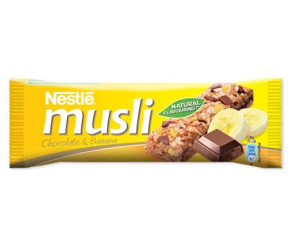 Пълнозърнест овес 32,5%, глюкозен сироп, сироп на инвертна захар, пълнозърнеста пшеница 8,5%, парченца млечен шоколад 8,0% (захар, пълномаслено мляко на прах, какаово масло, какаова маса, суроватка на прах, обезмаслено мляко на прах, емулгатор: соев лецитин, ароматизант), влагозадържащ агент: сорбитолов сироп, малцов екстракт от ечемик, кокосова мазнина, изсушен банан 4,5%, овесени трици, захар, пшеничено брашно 1,2%, мед 0,5%, царевично брашно 0,5%, малцово пшеничено брашно 0,4%, сол, ароматизанти, емулгатор: слънчогледов лецитин, регулатор на киселинността: лимонена киселина, антиоксидант: токофероли, меласа. Млечният шоколад съдържа мин. 25% какаова маса.