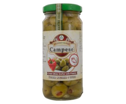 Зелените маслини с чушка на Campese са продукт с неповторим вкус и отлично консервирани качества. Подходящо предястие за любителите на нетрадиционни вкусове.