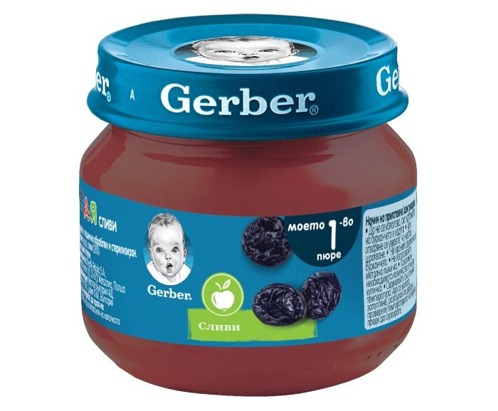Пюрето Nestlé GERBER® Сливи е фино смляно и е подходящо за най-малките коремчета. То е чудесен избор с който да запознаете бебето в периода на захранването. Пюрето е с прекрасен и натурален вкус, без добавени захари, консерванти, сгъстители и оцветители. Не съдържа глутен.