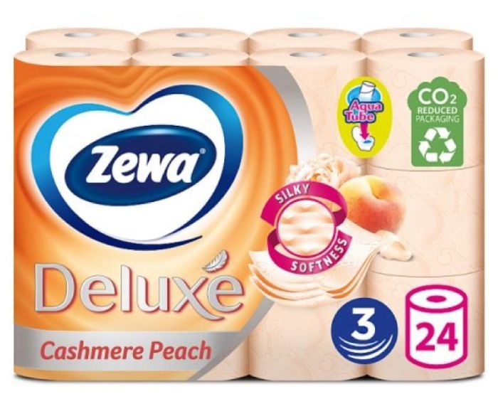 Zewa Deluxe Cashmere Peach е висококачествена, плътна и мека хартия, чиято здравина Ви осигурява спокойствие и деликатен комфорт. С цвят на праскова и неповторим аромат, който изпълва атмосферата със специално усещане.