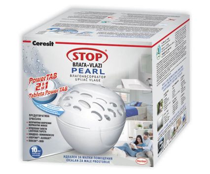 Ceresit STOP Влага, мини влагоабсорбатор, e Абсорбатор на влага и миризми за малки стаи като бани, спални и кухни до 25 m3 или 10 m2. Работи с мини таблетки от 300 g.
