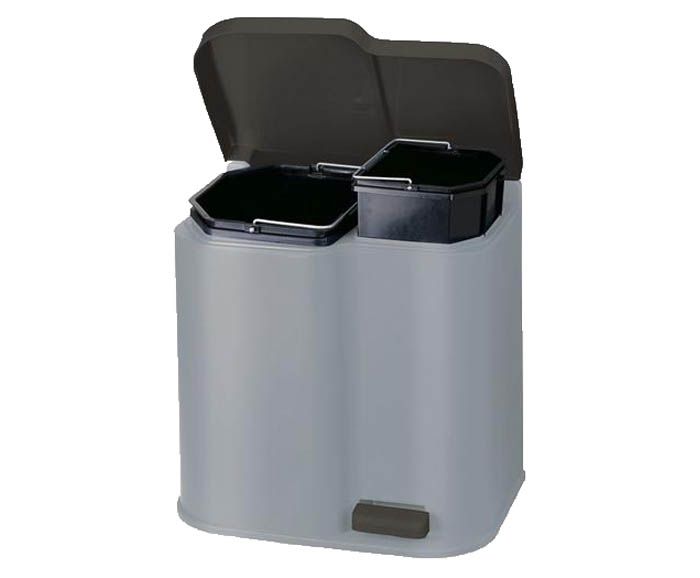 Пластмасово кошче за отпадъци с две отделения от 15 и 7л. Измерения: 30 x 40.5 x 42 см. Цвят: сив антрацид.